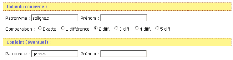 Si vous ne trouvez pas votre bonheur modifiez ou les différences ou les critères de date. Mais progressivement, et en fonction des noms que vous recherchez ! (Si vous cherchez avec 5 différences sur un nom de 5 lettres dans une base assez conséquente vous allez récupérer des milliers de noms inutiles)
